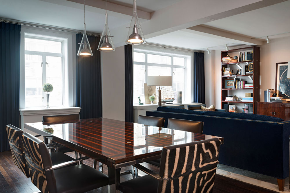 Elizabeth Bolognino в Нью-Йорке. Много разных оттенков синего, дерева и звериных принтов. Все вместе выглядит очень спокойно, выдержано, продуманно и немного по-мужски.